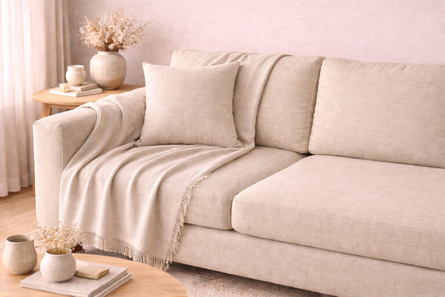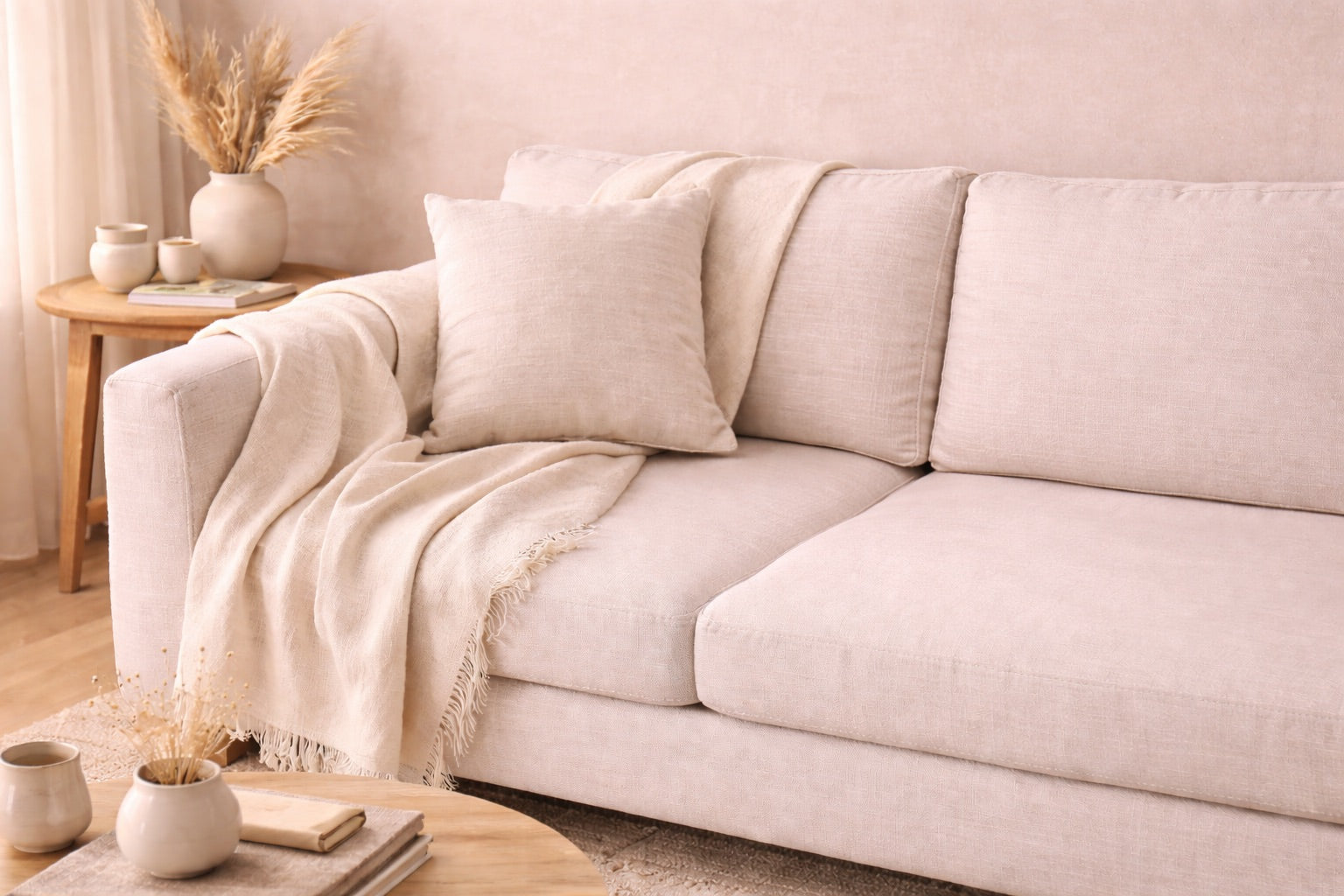 A Creamy, grain-inspired neutral with soft warmth and subtle depth. Comforting and elegant, it adds a quiet softness that feels instantly welcoming.