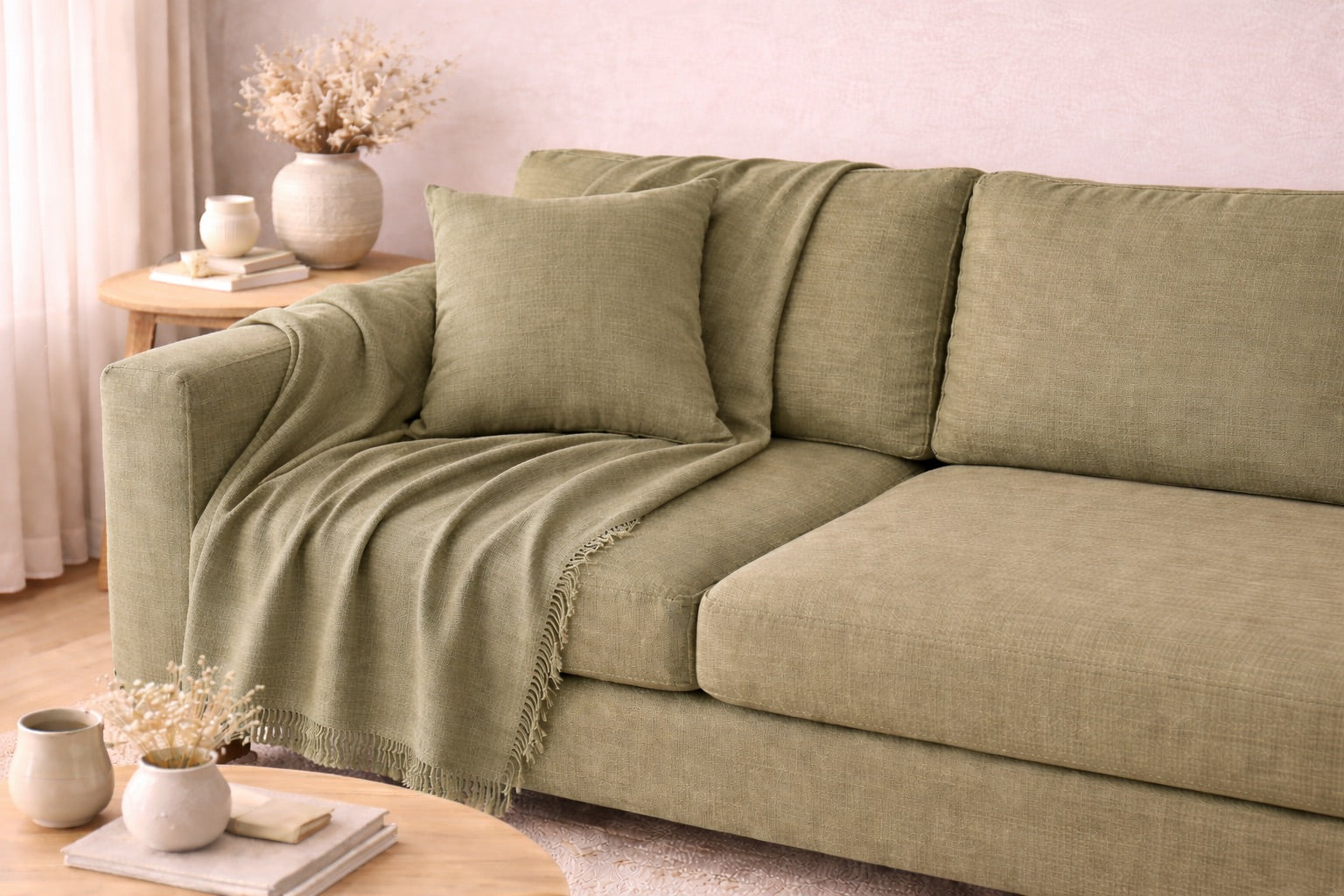 A muted, nature-inspired green with calm olive notes and a relaxed linen texture. soothing and refined, it connects the indorrs with an organic, balanced feel.